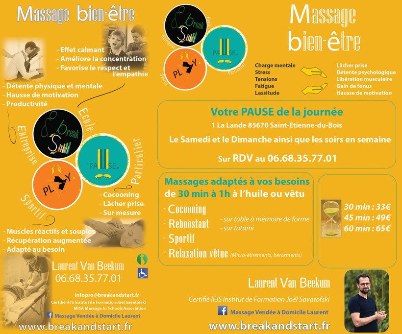 Contact : Laurent VAN BEEKUM – 06 68 35 77 01 – infopro@breakandstart.fr